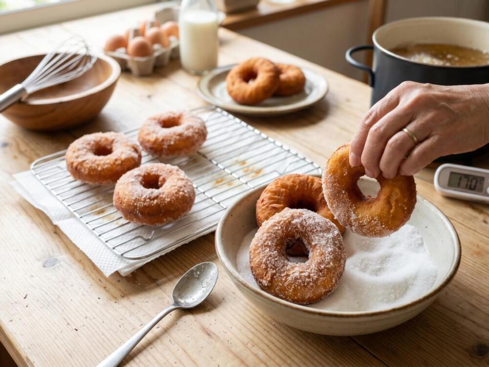 仕上げの砂糖をきな粉やココアパウダーにアレンジするのも素敵ではないでしょうか。基本の「母ドーナツ」がシンプルだからこそ、こうしたバリエーションが広がります。少しの手間で、まるで違うお菓子のような楽しみ方ができるのも、このレシピの奥深さなのではないでしょうか。
