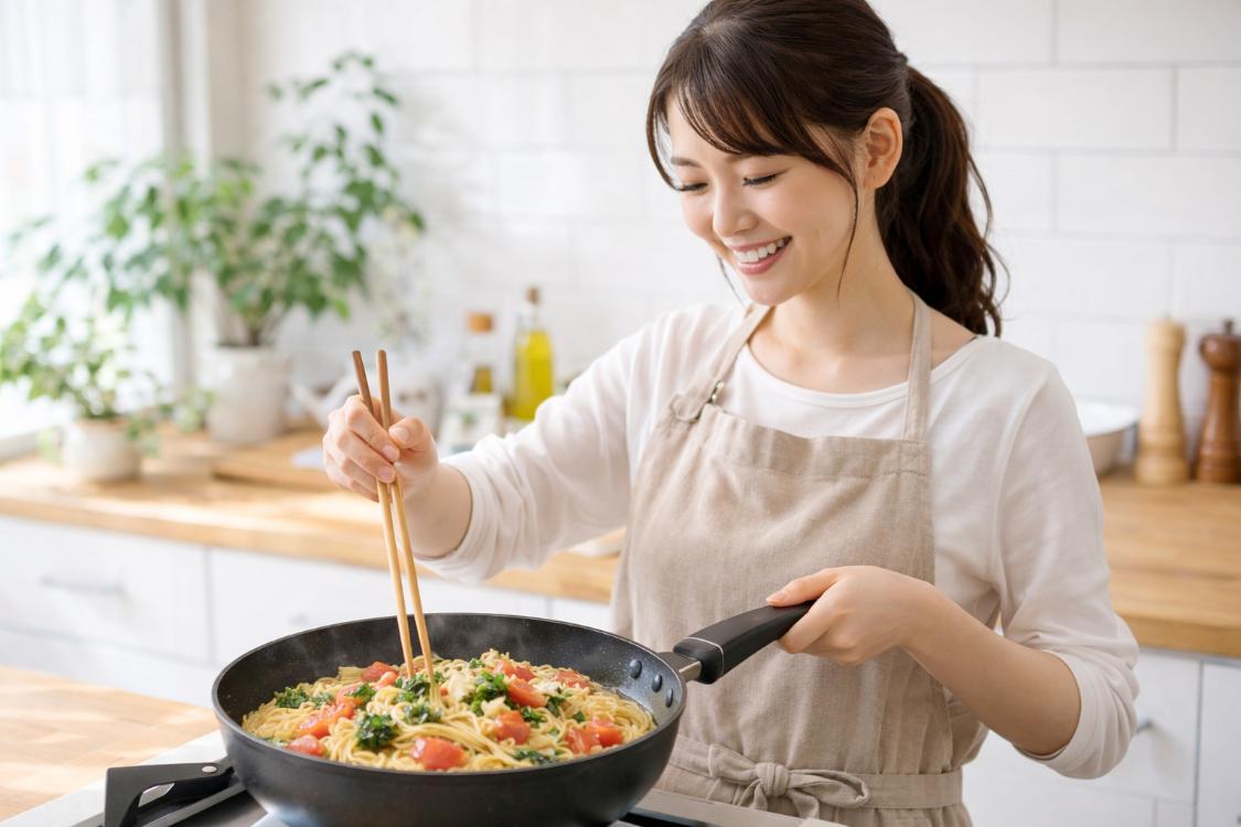 2026年の節約術として注目されているのが「セミ・オフ火調理」です。パスタを煮込む際、指定の時間の1分前に火を止め、ふたをしたまま放置することで、残った予熱で芯まで熱を通します。これにより、微々たるものですがガス代を節約し、麺のコシを保つことができます。