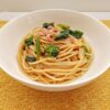 • フライパンにオリーブオイル(大さじ3)とレモン汁を入れ、ゆでたパスタを加えて中火で加熱する。木べらで混ぜながらソースがとろっとするまで2分ほど加熱し、塩・こしょうで味を調える。